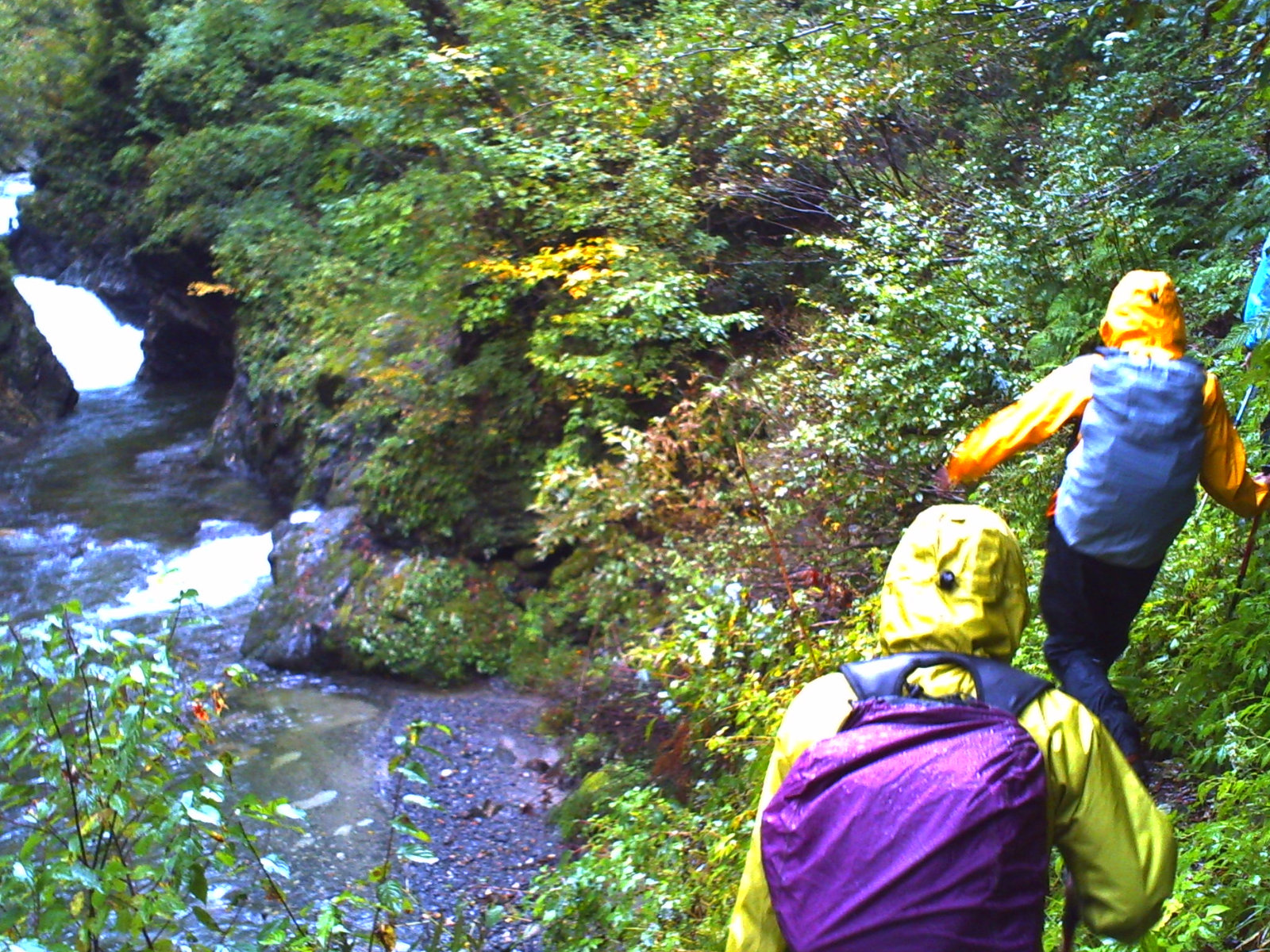 今回いちばんの難所ゼカイ沢。渡渉出来るポイントが無く苦労しました。