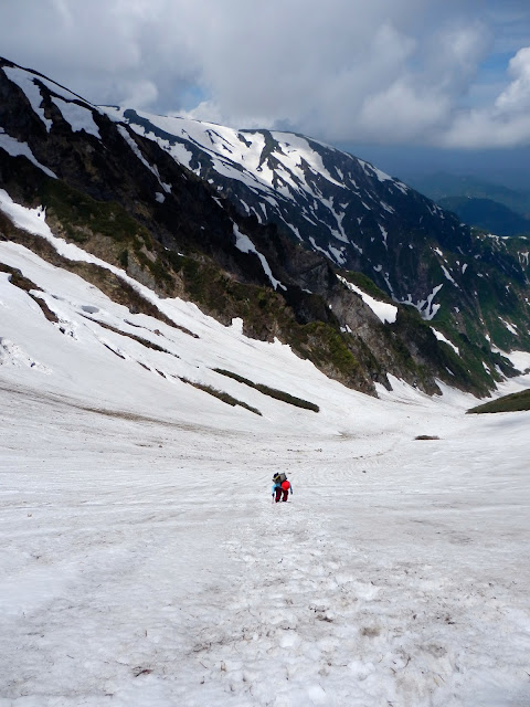 8:27先週と変わらず地竹原から雪渓イン!